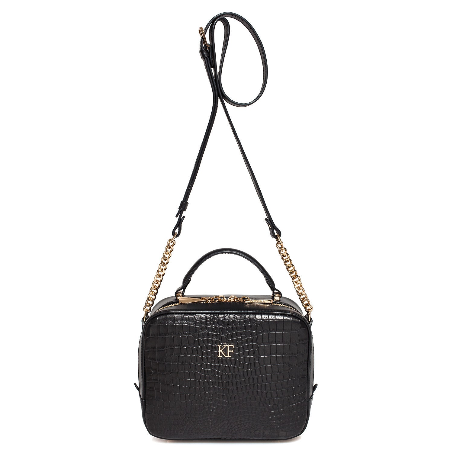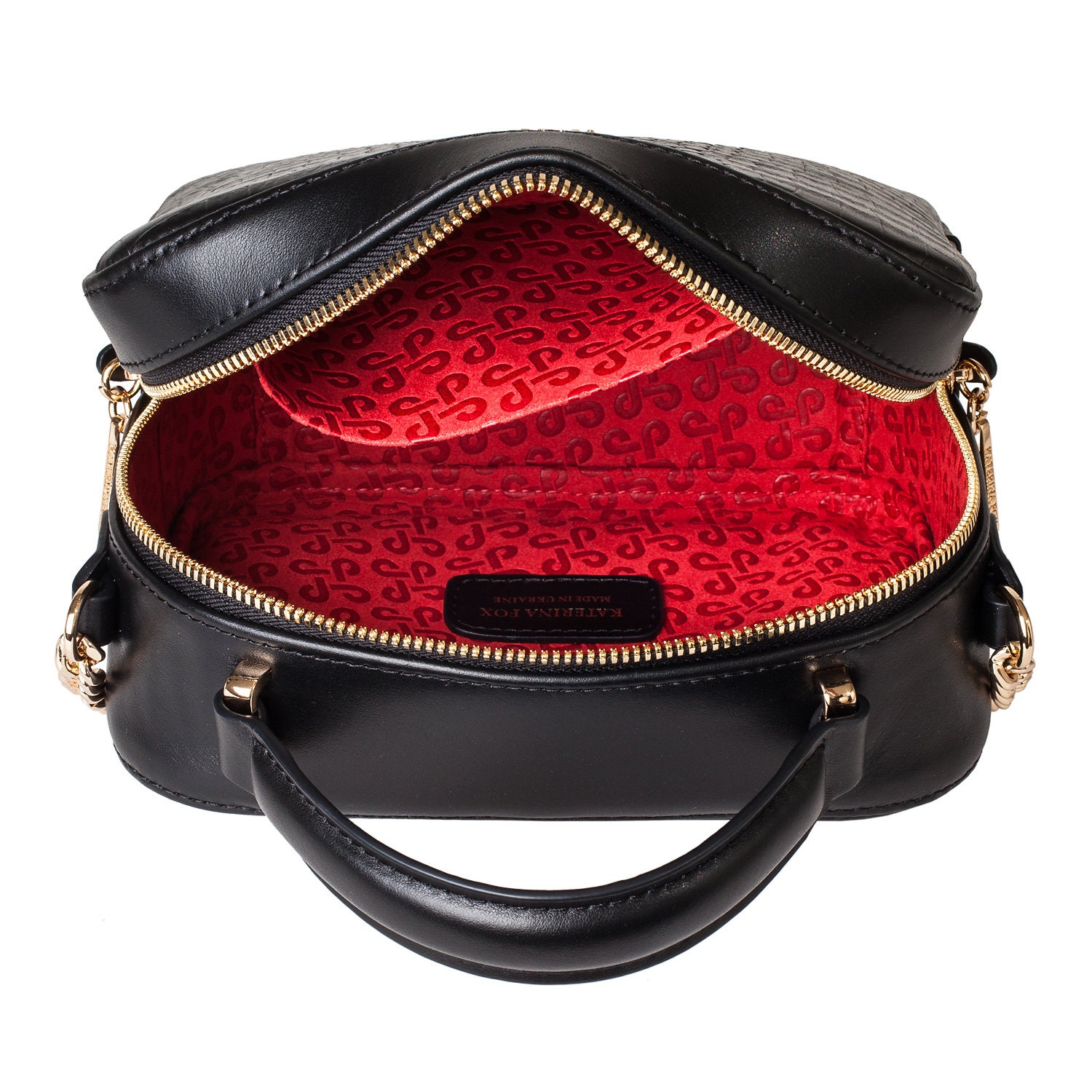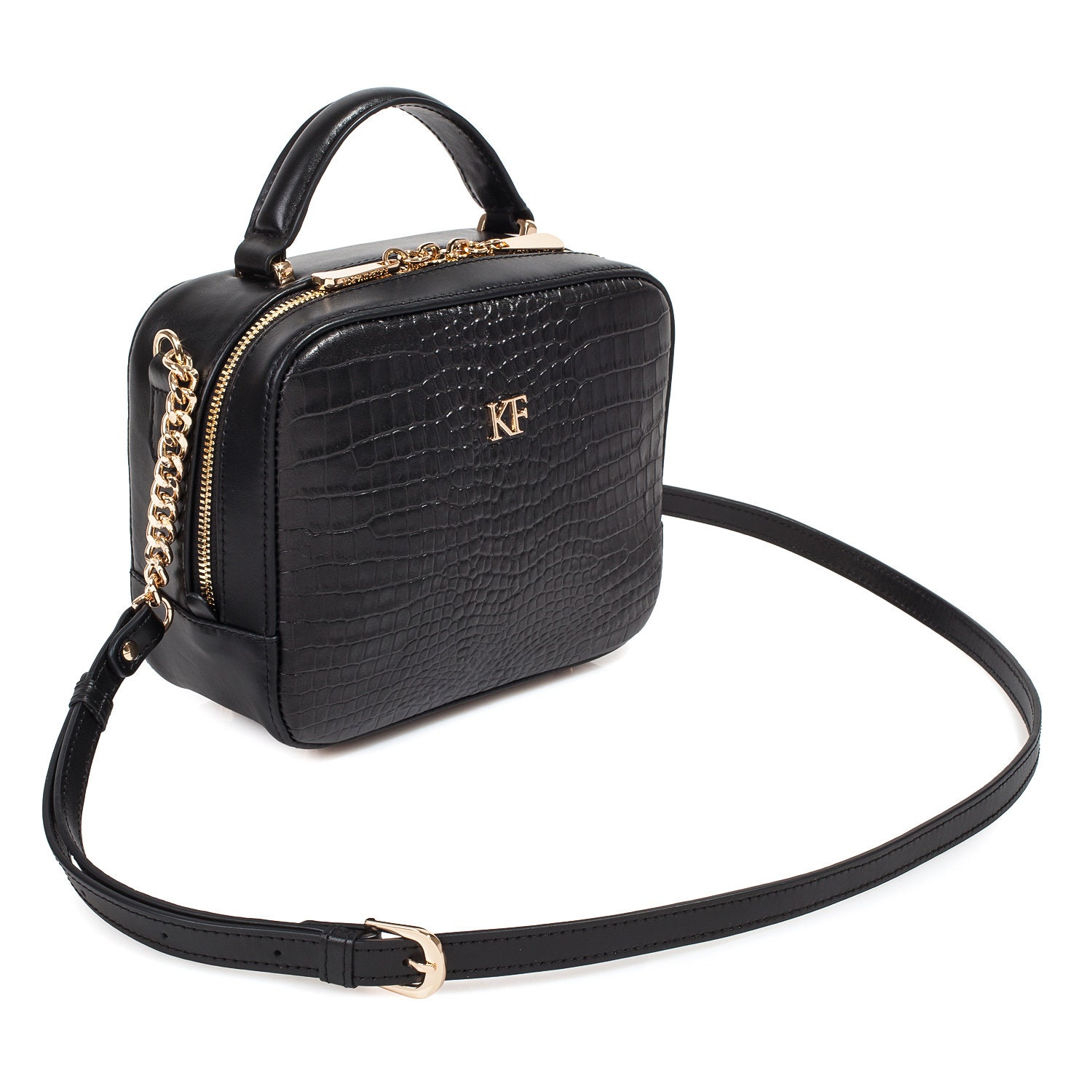 Black genuine leather woman shoulder bag from ukrainian designer Katerina Fox. Fashionable and elegant modern bag KF for bright girls and women. This bag is able to attract attention and highlight your exquisite taste. The internal space of a bag is equipped with one spacious compartment and one zipper pocket. The bag is closed with a zipper. The length of the strap is adjustable. The kit also includes a storage bag.